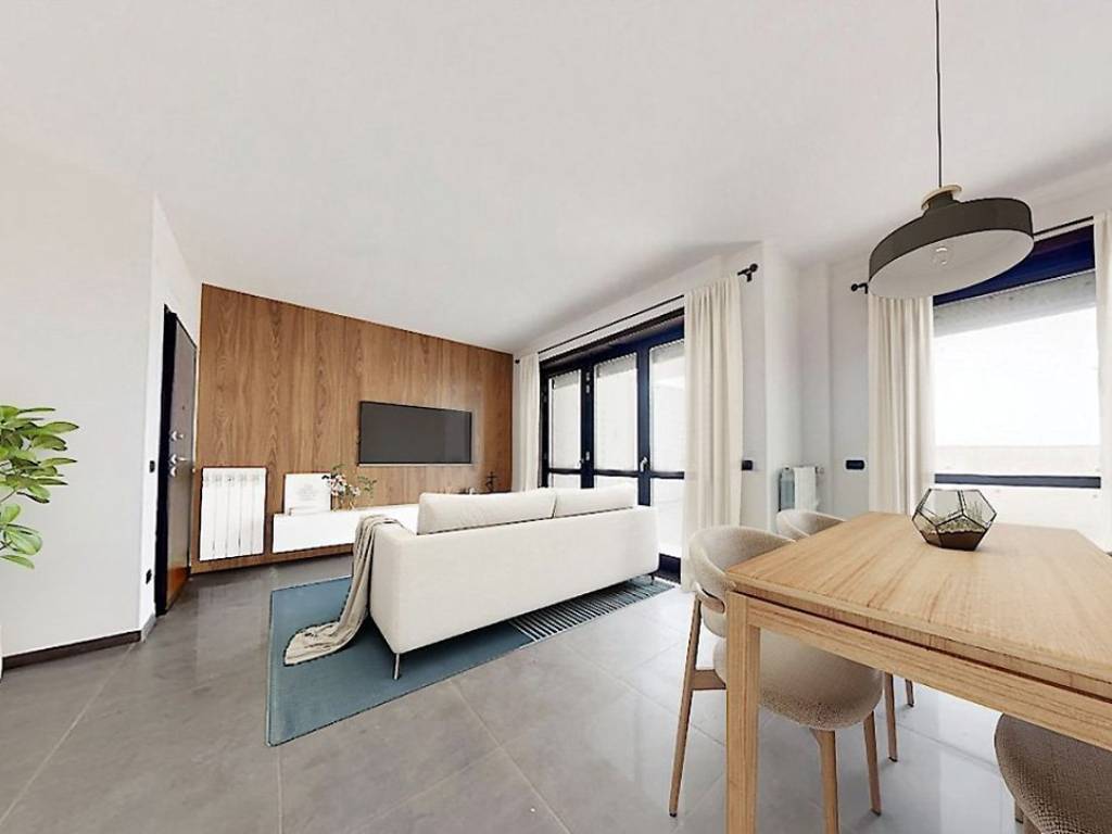 L'alloggio è fornito di porta blindata, videocitofono, cronotermostato ambiente ed elettrovalvole, impianto tv centralizzato, lampade d’emergenza e predisposto sia per l'impianto d'allarme che di condizionamento. Lo stabile, in cortina e con ascensore, possiede riscaldamento centralizzato, compresa la produzione di acqua calda sanitaria.