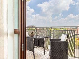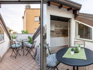 Attico panoramico su due piani composto da ampia zona living, cucina abitabile, servizi e balcone. Attraverso la scala interna si accede ad una spaziosa mansarda di 49 mq con balcone al piano.
