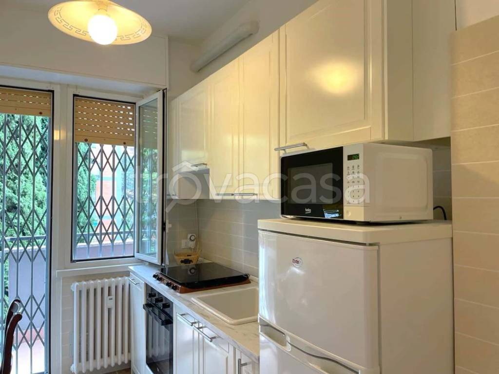 Large and bright three-room apartment with balcony in Milan Primaticcio area. The apartment is located on the 1st floor of an elegant building and consists of two large bedrooms, a full bathroom, an eat-in and separate kitchen, and a large living room.