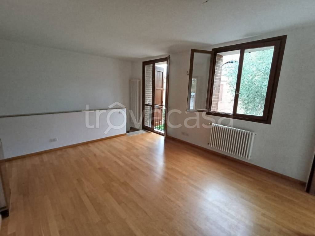 Rif. 3827 Proponiamo a Cà di Sola un appartamento al piano terra con ingresso indipendente così composto: portico d'ingresso, soggiorno con angolo cottura, dis. , camera matrimoniale, camera singola e bagno; scale interne che collegano al piano sottostrada con una lavanderia ed un'ampia cantina con parte esterna. Garage doppio con cancello carraio automatico. Completa l'immobile un giardino privato di circa 100mt, porta blindata, porte interne bianche scorrevoli, legno in rovere nei pavimenti e ceramica in cantina, termo arredo nel bagno e 2 cronotermostati sui due piani. € 290.000