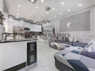 Appartamento in zona pregiata in piccolo contesto. Composto da: p. 1° - ingresso, ampio soggiorno, cucina abitabile, disimpegno notte, 2,5 camere da letto, 2 bagni, 3 balconi e piccolo giardino. Al piano terra, raggiungibile da scaletta interna, abbiamo una taverna, ripostigli, lavanderia, garage doppio ed ampio cortile di pertinenza. Finiture di pregio. Infissi cambiati recentemente. Classe Energetica e - kWh/m2/anno 142,8