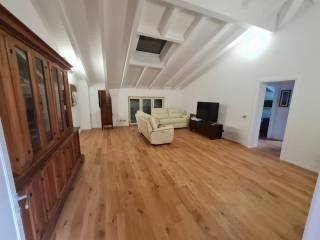 Era una giornata piovosa e la strada esterna affollata come nelle prime ore del giorno. Il cancello elettrico si è aperto su un ampio cortile comune recintato da una inferriata solida: il resto del mondo lasciato fuori. Il portone di ingresso si affaccia sul pianerottolo gradevole: o ascensore o scale...belle. Al secondo piano si accede all'appartamento da porta blindata: sono entrata in una bella stanza, luminosa e spaziosa che si è scelto di adibire ad ufficio ed attesa ospiti. Il soggiorno ..ma che soggiorno!..caratterizzato dal soffitto con travi a vista tinteggiati di bianco e da un "caldo" pavimento in rovere..le stanze da letto..la cucina..i bagni...che dire..mi sono persa ad ammirare ogni dettaglio mentre la luce filtrava dalle finestre nonostante la giornata grigia e il mondo fuori, in movimento..come in un film muto. Da Vedere!
