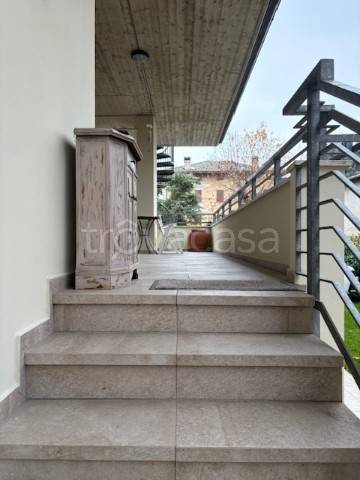 La casa si apre su luminoso ed accogliente soggiorno, cucina abitabile comoda e spaziosa, zona notte composta da camera da letto matrimoniale principale, bagno grande con doccia e vasca, seconda camera da letto di 12 mq, scendendo al piano sottostante da una comoda scala, troviamo il secondo bagno e un'ambiente completamente ripristinato, con cappotto nel muro esterno dove è stata recuperata una terza camera da letto. Cantina, lavanderia e garage per 2 auto coperte. Dal soggiorno accesso diretto al terrazzo coperto che accompagna al giardino di proprietà che avvolge la proprietà su due lati. No spese di condominio. Solo in comune la luce dei cancelli e dell'illuminazione. Soluzione molto comoda, accogliente, vicinissimo al centro del paese, raggiungibile anche a piedi, per la colazione della domenica mattina. Per maggiori informazioni e visite chiama lo studio immobiliare la maison di Vandelli Stefania - t. 3333196890