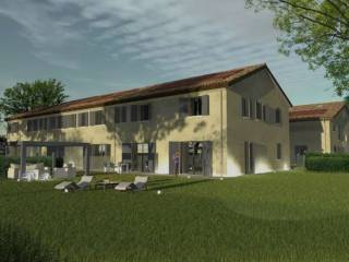 Abitazione così disposta; piano interrato: ampia taverna con bocche di lupo, lavanderia, cantina e zona alloggiamento caldaia. Piano terra: ingresso, garage doppio, studio, bagno finestrato e giardino su quattro lati con doppio pergolato. Piano primo: soggiorno con balcone, cucina a vista con secondo balcone, dis, bagno e camera matrimoniale/studio. Piano secondo: (mansardato con doppio volume e tetto in legno) tre camere da letto e due bagni finestrati.