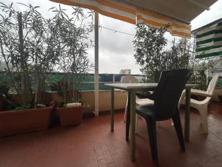 1 camera matrimoniale ampia + 1 camera matrimoniale + cucina abitabile con apertura sulla terrazza + soggiorno ampio e luminoso con apertura su ampia terrazza (mq.20) + 1 bagno + disimpegno + ripostiglio + posto auto esterno. Possibile ricavare secondo bagno.