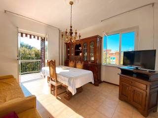 Al primo piano, salotto con balcone, cucina abitabile con balconcino di servizio e bagno con doccia. Nel sottoscala, zona lavanderia.
