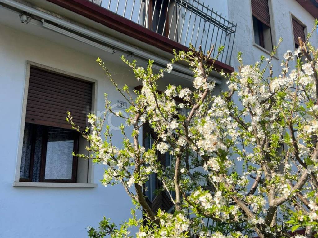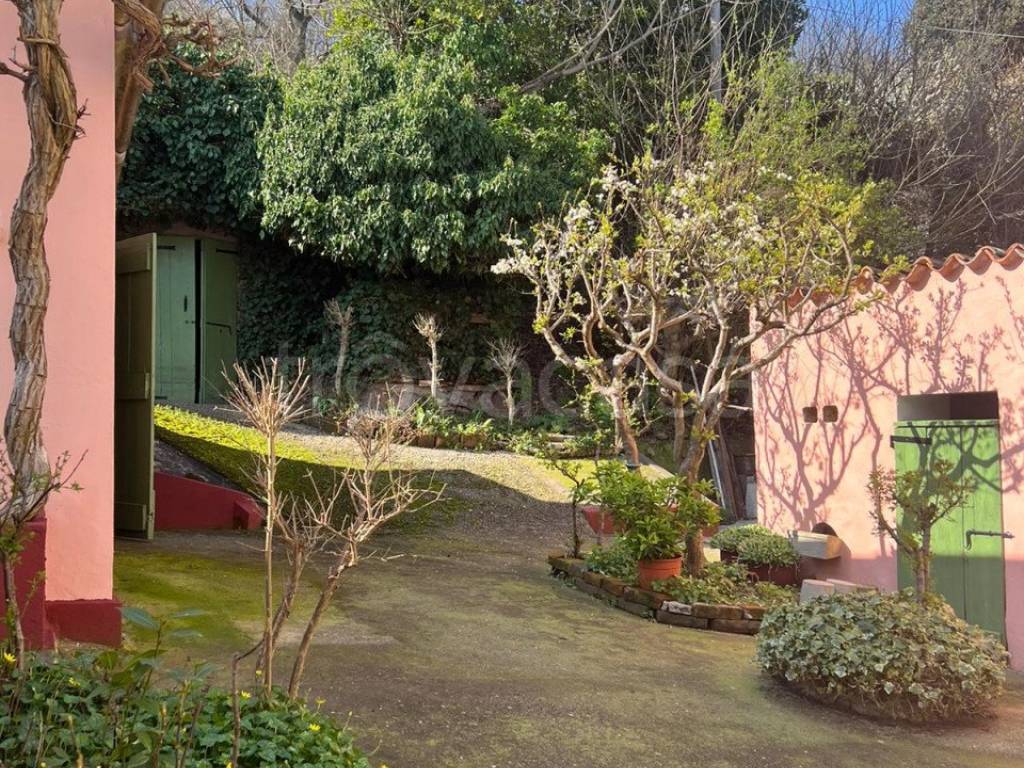 Si accede attraverso il giardino ordinato e piantumato che continua anche sul retro dell'abitazione per un totale di circa 2.000 mq.