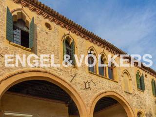 L’ingresso principale si apre su una vista spettacolare dei Colli Euganei, mentre l’ampio portico e il parco di 30.000 mq piantumato ad ulivi rendono la proprietà un’oasi di charme e riservatezza. Completa l’offerta un annesso rustico trasformabile in unità indipendente.