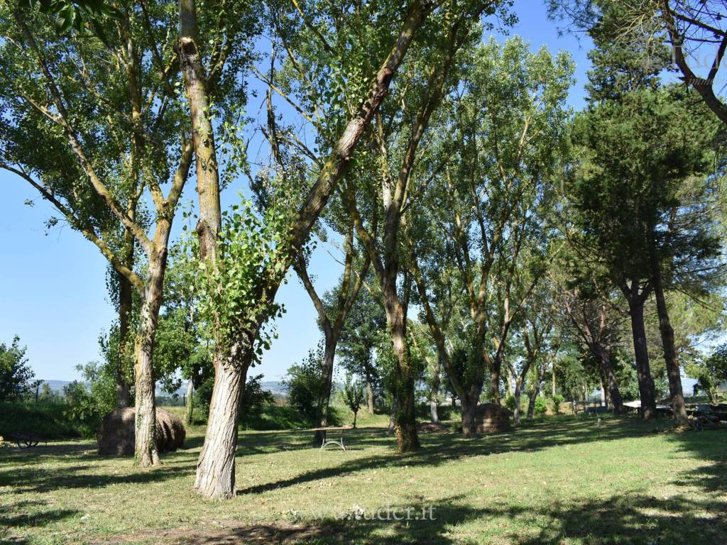 Circondato da un bel terreno di circa 3 ettari, destinato in parte ad ampio parcheggio e parco di 12.400 mq. E la restante parte ad uso agricolo irriguo di 16.900 mq..