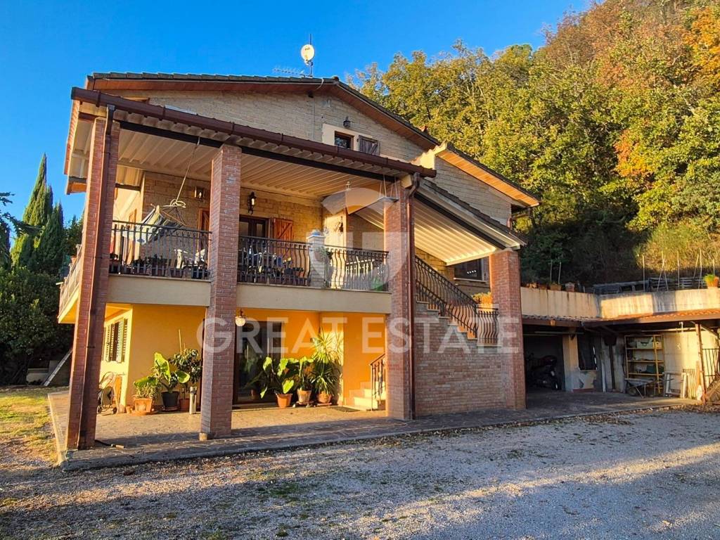 La villa “Incanto sul Tezio” è un'autentica oasi di tranquillità immersa nella natura, a 15 minuti dal centro storico di Perugia. Questa bella residenza di circa 300 mq è situata in uno scenario mozzafiato, circondata da oltre un ettaro di terreno in leggera pendenza, caratterizzato da decine di ulivi secolari e confinante con un bosco incontaminato.