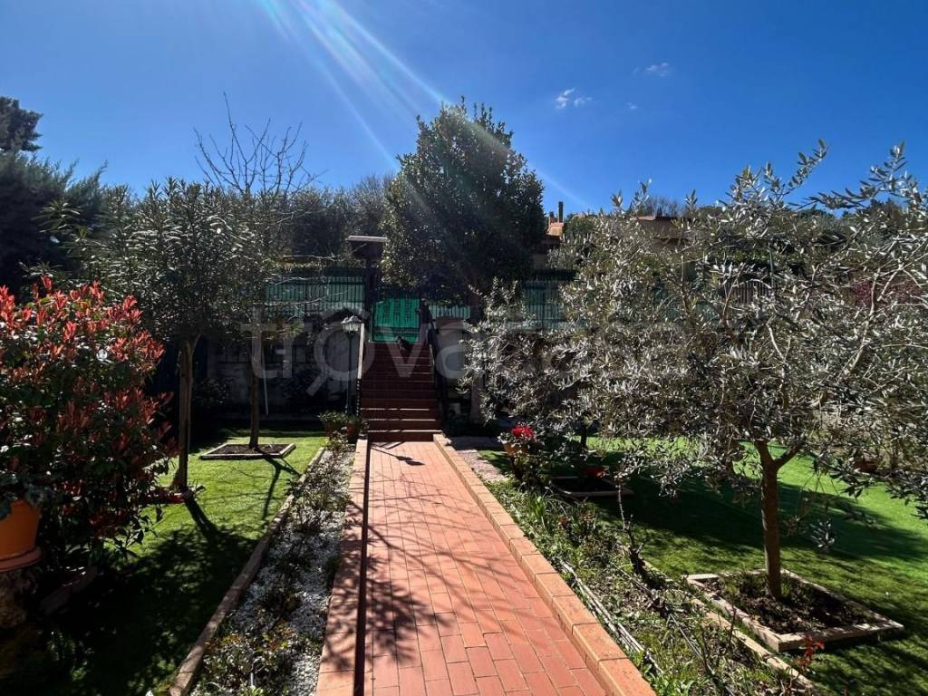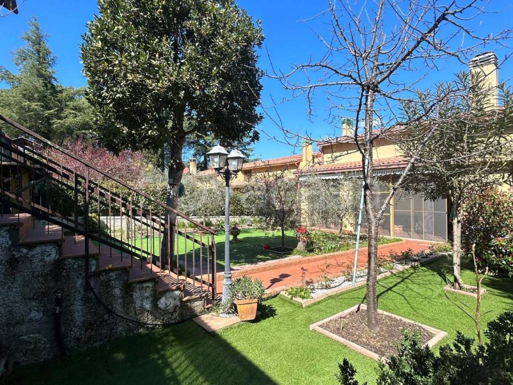 L' ampio giardino, abbraccia la villa su due lati, offrendo un’area verde ben curata e perfetta per momenti di tranquillità e svago all'aperto.