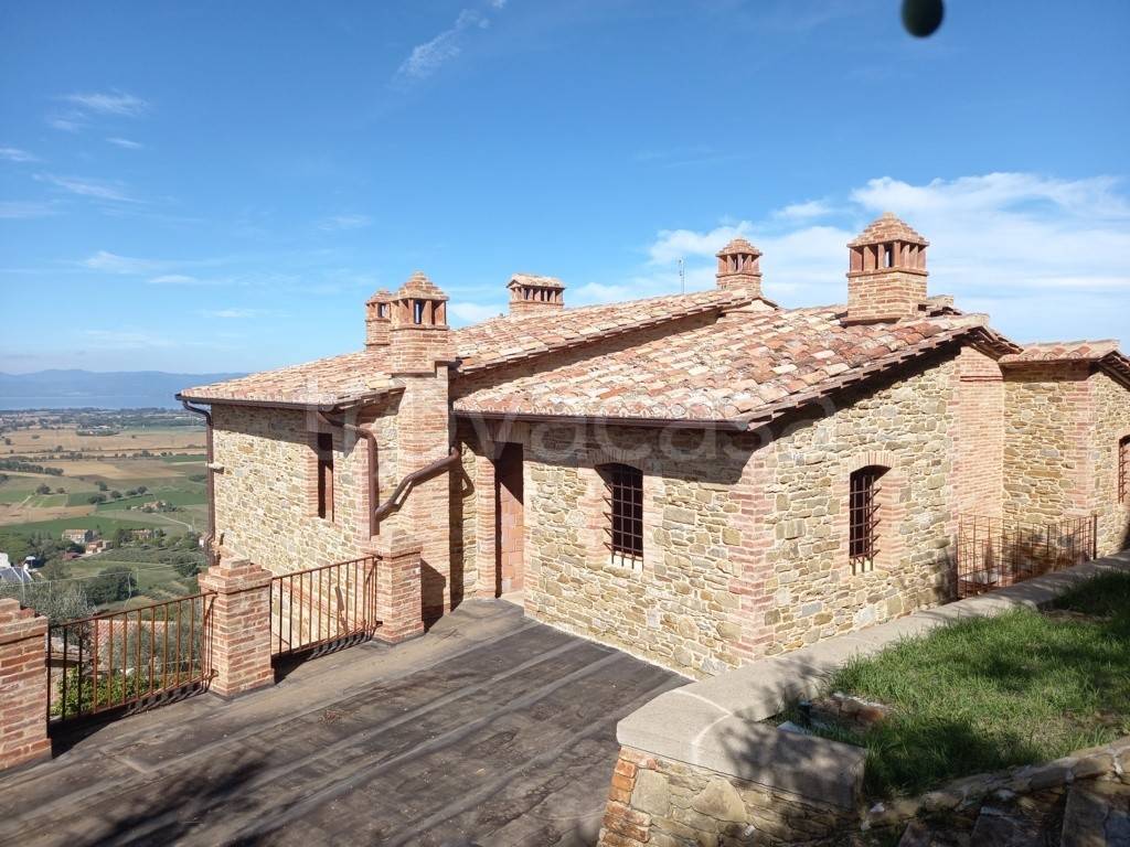 Il casale "Tra il lago e le nuvole" è una proprietà di circa 500 mq, disposta su tre livelli, con suggestive terrazze panoramiche vista lago per complessivi 200 mq ed un giardino di 4000 mq circa. Attualmente in fase di finitura, è concepito per realizzare due unità familiari con ingressi indipendenti, ed è ancora possibile realizzare un'unica residenza privata oppure adibire il casale a struttura ricettiva. Attualmente il piano seminterrato dispone di garages, taverna, lavanderia e ripostigli. Il piano terra prevede ampi soggiorni, cucine, disimpegni, servizi, un patio e terrazze. Il piano primo dispone di cinque camere, disimpegni, studio, due bagni, terrazze per un totale di 120 mq circa, con una magnifica vista. Il terreno di proprietà sviluppa una superficie complessiva di circa 4.000 mq e si distingue in giardino del casale con piante di ulivo, tre viali di accesso, area relax con possibilità di realizzare una piscina. Il casale vanta una recente edificazione con materiali di alta qualità, ed è da terminare internamente. Dalla posizione collinare in cui si trova, si gode di una splendida vista sul lago Trasimeno, sulle colline circostanti e sulla Toscana e grazie alla sua ubicazione, si può raggiungere il centro storico di Panicale con una passeggiata a piedi di pochi minuti. La richiesta economica si riferisce al casale allo stato attuale. Possibilità di acquistare il casale completamente finito, il prezzo è da concordare.