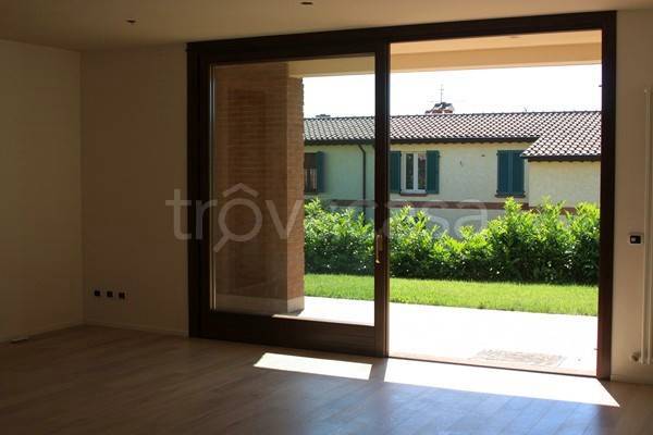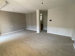 Piano terra (92 mq + 6 mq di portico) con ingresso, salone, cucina, camera (o sala da pranzo), bagno, vano ascensore, portico ed accesso al giardino;