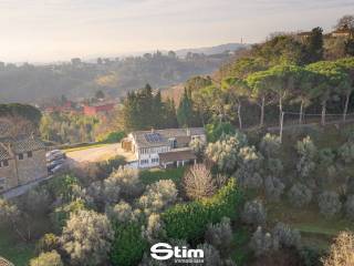Al piano terra c'è un bagno, cucina, sala da pranzo, 3 soggiorni, uno studio e una corte interna. Ci sono molti elementi antichi in tutta la proprietà. Ad esempio, ci sono archi in mattoni che separano tutti i soggiorni. Il secondo livello comprende 6 camere da letto e 3 bagni. Tutto il secondo livello è pavimentato in parquet. Dal secondo livello si gode di una splendida vista su Perugia. In tutte le camere da letto e nei bagni ci sono finestre in legno ad arco che portano molta luce naturale. Raramente riesci a trovare una casa così vicina a Perugia ma immersa nella campagna italiana.