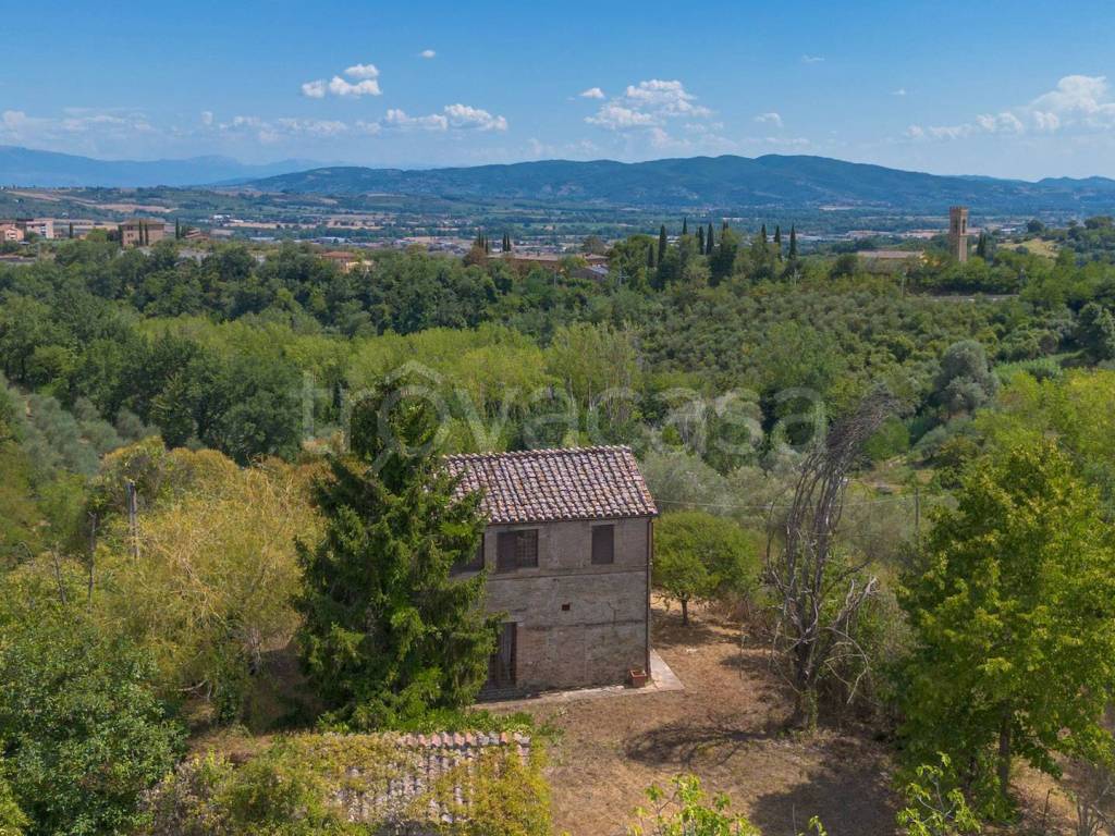 In zona San Girolamo proponiamo in vendita un delizioso casale, di quasi 250 metri quadri più annessi, apparentemente in aperta campagna, immerso tra gli uliveti e con una splendida vista sulla vallata sottostante, Assisi e gli Appennini, ma a meno di 15 minuti a piedi da Borgo XX Giugno ed il centro storico di Perugia. Il casale, caratterizzato da finiture rustiche tradizionali come i pavimenti in cotto, le pareti in pietra e le travi a vista, si sviluppa su due livelli ed è composto, al piano terra, da un ampio soggiorno con camino, da una sala da pranzo, da una cucina, dai servizi per gli ospiti e da uno splendido e panoramico portico ideale per cene all’aria aperta; mentre, al secondo piano, da due camere da letto, entrambe con cabina armadio, doppi servizi, lavanderia e disimpegno. All’esterno sono presenti altre due strutture, per altri 100 metri quadri totali, originariamente destinate ad uso agricolo, da recuperare per vari scopi. Completano la proprietà oltre 5 ettari di terreno, per lo più adibiti ad uliveto, con pozzo e cisterne per l’accumulo di acqua.