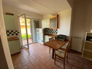 La proprietà si sviluppa su tre livelli e accoglie con una calda zona giorno al piano terra, arricchita da un camino che rende l’ambiente particolarmente piacevole in ogni stagione. La cucina è abitabile e si apre direttamente sulla veranda, uno spazio ideale per vivere l’esterno e godere dei momenti conviviali.