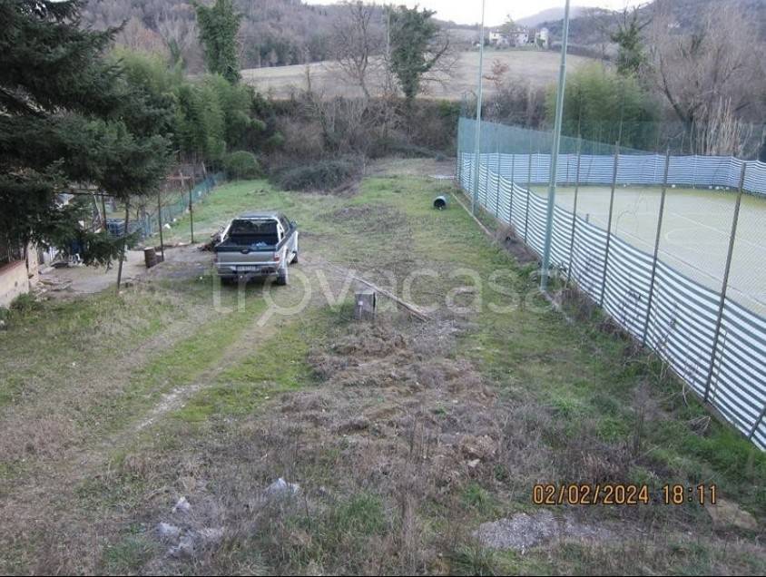 Compendio immobiliare al quale si accede deviando dalla provinciale del “Pantano” su tratto di circa 6 km della comunale della “Bruna” e quindi deviando, all’incrocio presente all’inizio del piccolo paese, sulla destra su breve tratto su Strada Castiglione Ugolino, a circa 7 km dall'uscita "Pierantonio" della E45 orte-ravenna. Ha una superficie complessiva di circa 3.340 mq. A mezzo di ingresso carrabile e pedonale - entrambi con cancello in ferro ad apertura manuale sorretti da colonne in muratura - si accede direttamente al giardino posto a livello del piano terra. La proprietà è costituita da lotto di terreno in parte recintato con vecchia recinzione, forma trapezoidale, su due livelli di cui il superiore (livello strada) con l’ingresso alla villa ed il giardino e quello inferiore (livello Rio) area sportiva attrezzata (campetto da tennis/calcetto e locali accessori), il tutto così rappresentato: - Giardino Di ridotta superficie (rispetto alla superficie del lotto) presente nei lati nord ed est della villa pressoché alla stessa quota della via pubblica parte destinato a piazzale (anche per sosta di automezzi) parte occupato da fioriere ed aiuole con presenti alberature ornamentali; all’interno del giardino (in stato di semiabbandono) si rilevano una tettoia con sottostante forno per pizza/braciere realizzato con in muratura materiali di varia natura e un gazebo in legno delle dimensioni di circa m. 3,00 x m. 3,00, oltre ad un impianto di illuminazione non funzionante e non a norma. - Impianto Sportivo Occupa la maggiore superficie del terreno a valle nel lato sud della villa in area pressoché pianeggiante ed è rappresentato da un appezzamento di terreno di forma pressoché regolare, pianeggiante, attualmente per la maggior superficie occupato da impianto sportivo da ritenere, per caratteristiche e posizione, di facile possibile destinazione anche per altre attività ricreative e di svago o per arredo urbanistico, oltre a rilevare modesta superficie di possibile destinazione per coltivazioni orticole per uso familiare. E' presente un campetto da tennis/calcetto con fondo in materiale sintetico, recintato con pali in ferro e rete metallica (altezza m. 4 circa) e n. 4 pali di illuminazione notturna, struttura in mediocre stato di manutenzione e conservazione. Di pertinenza vi è uno spogliatoio realizzato nell’area adiacente al campetto, in muratura, isolato, parzialmente interrato, ospitante spogliatoi e servizi a corredo della struttura sportiva, costituito da ingresso in posizione centrale, locale spogliatoio illuminato da finestre del tipo “bocca di lupo” e bagno e locale docce illuminati e areati dallo stesso tipo di finestre del locale spogliatoi. Gli impianti di illuminazione ed idrici sono non a norma e non funzionanti e le finiture sono datate. All’interno del terreno è infine presente un cancello d’ingresso carrabile e pedonale in ferro verniciato ad apertura manuale, sorretto da colonne in muratura di pietra, e una vecchia recinzione nei confini con rete metallica sorretta da pali in ferri/cemento. - Villa Massiccio edificio edificato primi anni ’50 in muratura tradizionale, intonacato internamente ed esternamente, solai in piano in latero-cemento, tetto con struttura primaria e secondaria in legno e manto di laterizi, elevantesi su 4 piani fuori terra, oltre le soffitte semipraticabili, così suddivisi: - piano seminterrato: locali accessori; - piano terra: garage e locali accessori in parte trasformati in locali abitativi; - piano primo: appartamento residenziale; - piano secondo: appartamento residenziale; - soffitta. Al piano seminterrato-primo sottostrada si accede sia direttamente dal terreno a valle della villa che dal piano primo a mezzo di 2 scale interne e sono presenti un corridoio, due ambienti ex centrale termica, attualmente in disuso ed utilizzati come ripostigli, una cantina, ex legnaia rappresentata da unico ambiente con finiture civili in quanto già destinato a piccola palestra di uso familiare e un locale ad uso ripostiglio/fondo, per una superficie complessiva dei locali di circa 155 mq. Al piano terra si accede sia direttamente dal giardino a mezzo d’ingresso principale su porticato salendo alcuni gradini, sia da un secondo ingresso carrabile (a fianco del portico) che da ampio accesso carrabile presente nel prospetto est e sono presenti un locale fondo trasformato e con caratteristiche di cucina, un garage, un ex garage oggi monolocale con finiture ed impianti di civile abitazione con presente angolo cottura ed ampio camino nella parete terminale, un bagno di servizio e una scala di servizio di accesso all'ex legnaia, per una superficie complessiva della cucina (ex fondo) e monolocale (ex garage) di circa mq. 110,00, oltre al garage di circa mq. 22,00