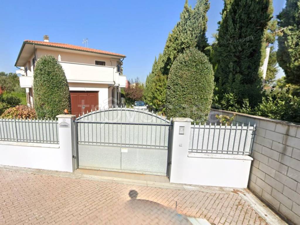 Villa unifamiliare distribuita su due livelli. Piano terra composto da soggiorno, cucina, bagno e due ripostigli. Piano primo composto da cinque camere, bagno e balcone. Completa la proprietà un giardino privato.