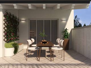 Cervia Centro -posizionata fronte darsena del sale, lato canale lato Milano Marittima proponiamo in vendita appartamenti in villetta di cinque unità in fase di costruzione. La palazzina verrà realizzata con tutte le tecnologie e le dotazioni delle nuove abitazioni con il massimo risparmio energetico della Classe a/4, riscaldamento a pavimento in pompa di calore elettrica, cappotto termico, infissi a taglio termico, impianto fotovoltaico individuale. Appartamento n. 5 posto al piano terreno composto da: soggiorno con angolo cottura mq. Circa 42, disimpegno, camera matrimoniale con balcone e bagno privato, due camere doppie, bagno, terrazzone e posto auto scoperto.