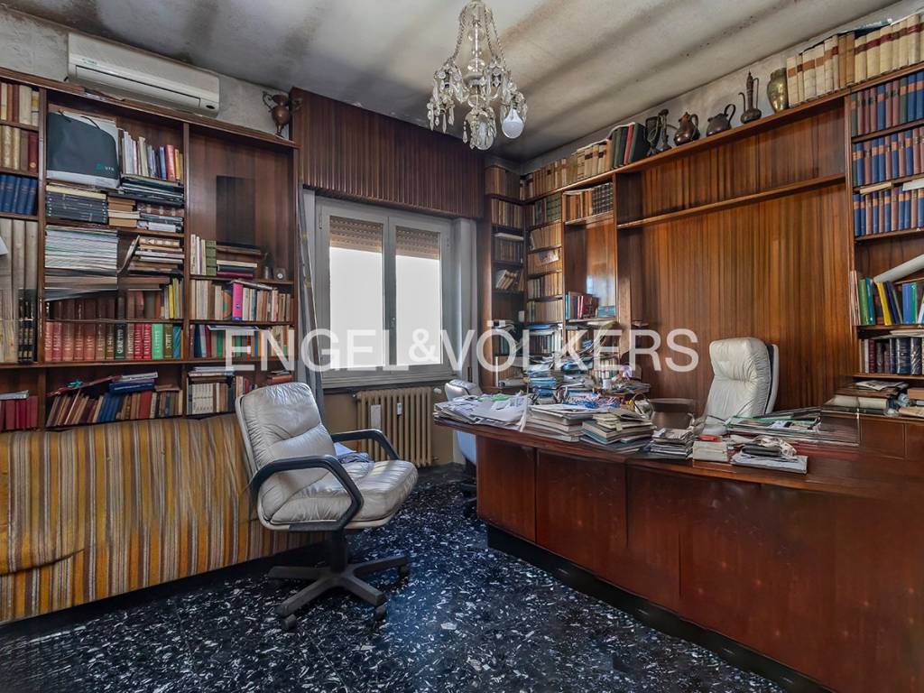 La zona notte comprende tre camere da letto, di cui una matrimoniale, due bagni finestrati e un comodo studio, perfetto come home office o come quarta stanza. Completano la proprietà tre ripostigli e un pratico cucinino utilizzabile come dispensa. Al piano seminterrato è presente una cantina di pertinenza.