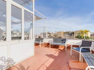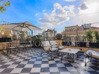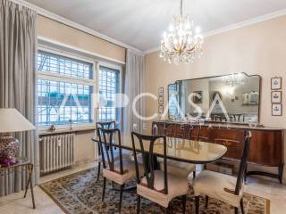 Viale Libia, in palazzo signorile con servizio di portineria, vendesi appartamento al piano attico. Posto al 5° piano con ascensore la casa si compone di un ingresso con grande salone doppio a vista, una bellissima cucina con grandi vetrate e vista panoramica su villa Chigi, 3 camere da letto, due bagni, uno studio con annessa cameretta di servizio, 3 ripostigli, 1 soppalco ed una cantina. La casa è circondata da un terrazzo perimetrale vivibile con affacci aperti e sul verde. La pavimentazione è tutta in ottimo parquet iroko, molto belle sono le porte pure in legno massello, tutti i copritermosifoni sempre in legno massello artigianali di ottima fattura, soffitti alti con sbalzi di controsoffittatura e luci incorporate. Uno dei tre ripostigli è attrezzato a cabina armadio, i bagni hanno il lavabo ad incasso e comodissimi box doccia. La climatizzazione è presente in tutto l'appartamento e il riscaldamento è assicurato da impianto con fancoiler + canalizzazione a soffitto. Di ottima qualità sono gli infissi a taglio termico e doppio vetro-camera. L'impianto di allarme è sia volumetrico per l'interno, sia perimetrale e anche volumetrico per gli esterni. E' una casa di classe dove la sapiente ristrutturazione, su progetto di architetto, ha ottimizzato al massimo la metratura ottenendo una gradevolissima vivibilità di tutta la superficie disponibile. La cifra di vendita è di € 840.000. Per prenotare una visita chiamare ai numeri 347.3251585 - 392.8532216 - 06.39742100.