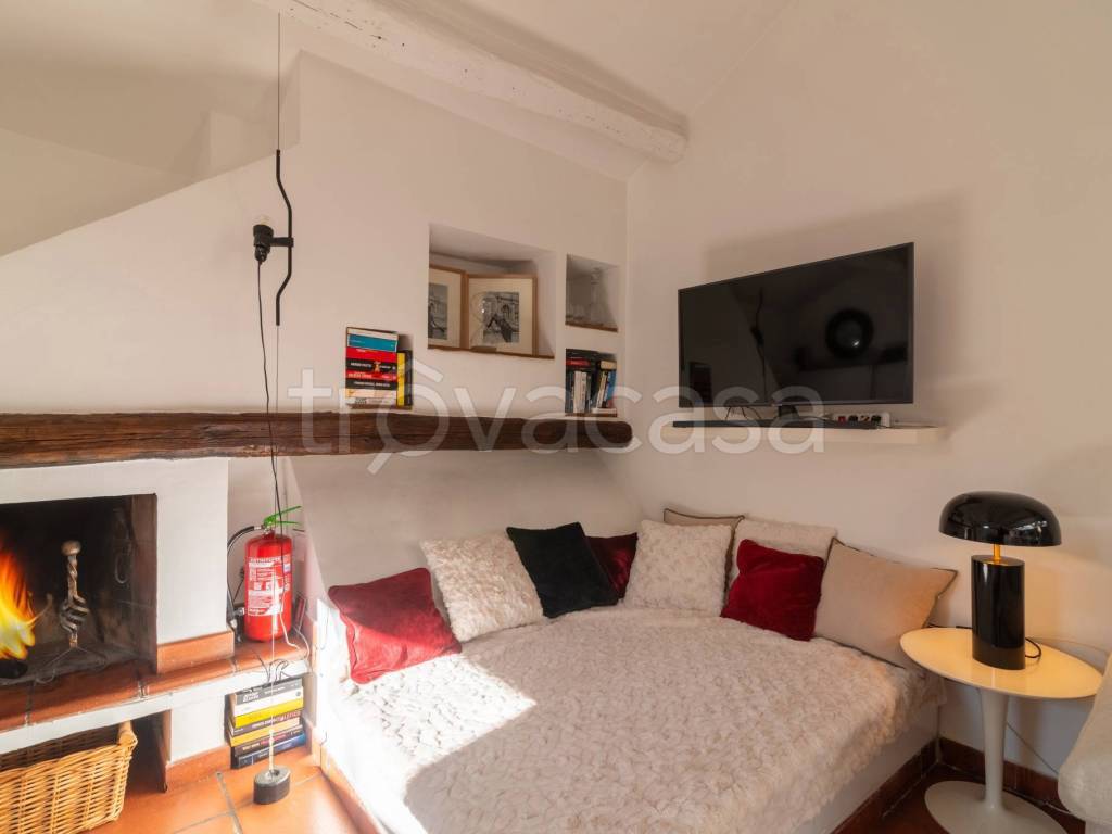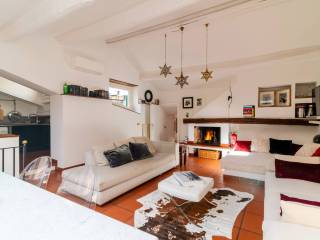 Ingresso nell'ampio soggiorno (con camino funzionante) particolarmente luminoso grazie alle varie finestre e lucernari - attraverso i quali si intravede la cupola di Sant'Andrea della Valle; grande cucina abitabile, separata dal soggiorno e completamente arredata; ripostiglio. Attraverso una porta si accede ad una piccola scala di pochi gradini che da accesso alla camera matrimoniale con bagno en suite e vari armadi a muro su misura. La camera da letto ha un affaccio nel giardino interno al palazzo con scorci sui tetti di Roma. Anche la camera da letto è particolarmente luminosa e silenziosa. Pavimenti in cotto, impianto di riscaldamento autonomo a gas, impianto di aria condizionata (daikin - Inverter) con opzione "pompa di calore". L'appartamento è ideale sia come abitazione residenziale privata che come investimento per uso ricettivo vista la posizione e la sua tranquillità. Attualmente adibito a locazione turistica con 'track-record' di redditività documentabile.