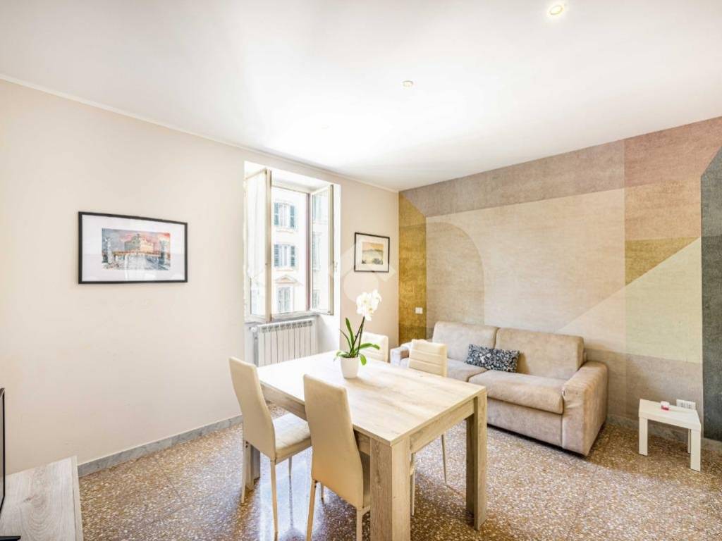 La soluzione abitativa è stata completamente ristrutturata dando molta cura a dettagli e finiture, troviamo un’elegante pavimentazione in graniglie originali dell’epoca, porte di qualità, infissi nuovi in pvc - doppio vetro, cucina arredata, sistema di illuminazione con faretti e condizionatori in tutti gli ambienti.