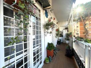 Qualche passo in più e si accede al balcone: a disposizione non solo della camera da letto ma anche della cucina, questo spazio consente un tavolo o una sdraio all’aperto, godendo dell’ariosità di un piano medio alto che mantiene la giusta distanza con il condominio vicino.