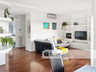 L'attico, che gode di una triplice esposizione e di una planimetria molto regolare, è posto al 3° ed ultimo piano con ascensore di una bella palazzina in cortina degli anni '70, immersa nel verde e collegata ad un meraviglioso parco e ad un comodo ed ampio parcheggio.