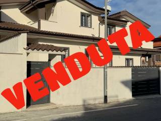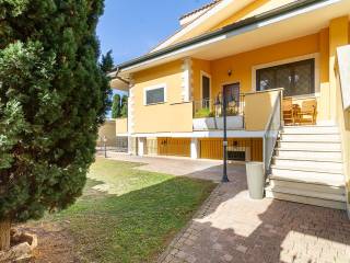 Immerse nel verde, in piccolo complesso residenziale privato, proponiamo ville unifamiliari, mq 130 residenziali, bilivelli, composte da: salone doppio, cucina a vista, 4 camere letto, doppi servizi, ripostigli, porticato coperto, giardino. Completano la proprieta' un'area parcheggio privata, interna al giardino mq 206.
