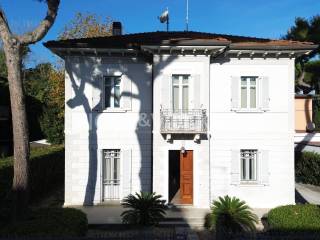 Riccione paese Ottima posizione per questa signorile villa in zona residenziale vicino al paese e a pochi passi dal viale Ceccarini e mare. Si sviluppa su di un lotto di circa mq 540. In ottimo stato con materiali di pregio, disposta su due livelli, ampio interrato con lavanderia, cantina, bagno e ripostiglio. Al piano terra soggiorno, tinello, pranzo, cucina, studio, bagno di servizio e due portici. Comoda scala che collega il piano primo composto da 4 camere, 3 bagni, 2 ripostigli e 2 ampi terrazzi. Sottotetto uso ripostiglio.