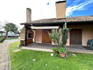 Porto viro - loc. Porto levante: Casini Immobiliare propone in vendita a Porto Viro all’interno del residence con piscina “Marina Nuova” di Porto Levante, immerso nel cuore del Delta del Po, a pochi passi dalla darsena, ideale per godere al massimo della fauna e flora naturalistica locale. Appartamento con ingresso indipendente composto da entrata su disimpegno con armadio a muro, ampio soggiorno con angolo cottura e camino, bagno con doccia al piano terra; doppia camera da letto matrimoniale al piano soppalcato. Include: posto auto scoperto, portico di proprietà con ricovero attrezzi e lavandino esterno, arredamento completo come da foto, infissi in vetrocamera, zanzariere e quota di comproprietà della piscina.