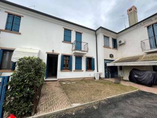 Taglio di po: Casini Immobiliare propone in vendita a Taglio di Po in zona residenziale vicina a tutti i servizi, villetta a schiera di 3 Piani in complesso residenziale di buone finiture. Una comoda scala esterna che arriva su un balconcino d'entrata ci accompagna all'ingresso del piano rialzato dove troviamo un unico ampio ambiente ad uso cucina/soggiorno ed un bagno . La scala interna ci porta al piano seminterrato dove troviamo una zona lavanderia/bucatoio ed un doppio garage. La stessa scala interna ci porta anche al piano primo dove troviamo una camera matrimoniale, un bagno ed una seconda camera. Entambe le camere hanno l'accesso sui balconi di proprietà.