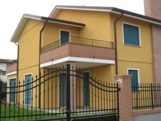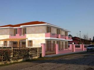 Piano terra: portico, studio, corridoio, soggiorno, cucina, due camere, bagno, centrale termica e ampio portico sul lato sud.