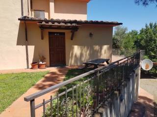 Deliziosa villetta nel tranquillo borgo di Piazze nel comune di Cetona, nel cuore della Val di Chiana. L'immobile è stato completamente e finemente ristrutturato nel 2018 con materiali di pregio ed interessanti soluzioni architettoniche. Si compone di due piani. Al piano terra troviamo un salone doppio con camino, una cucina a vista e un bagno. Si accede al primo piano da una scala in marmo di Trani e legno. Al primo piano troviamo due camere da letto, un secondo living e un bagno. Pavimento in parquet. Tutte le finestre si affacciano su di un balcone dal quale si può godere del magnifico paesaggio sulla vallata. Dal primo piano tramite una scala in ferro battuto si accede al giardino privato in cotto di Siena, alla corte esterna e al locale servizi con caldaia. Completano la proprietà un garage e un posto auto scoperto. L'immobile è vicino a tutti i principali servizi e ai centri di maggiore interesse turistico e archeologico, a poca distanza da Cetona, San Casciano dei Bagni, Chiusi e Montepulciano. Infissi con doppi vetri e tutti dotati di zanzariere scorrevoli. Possibilità di acquisto con l'arredo, in parte di design moderno, in parte di pregiata arte povera in legno di castagno massello.