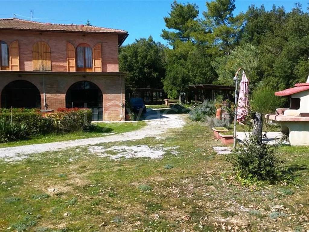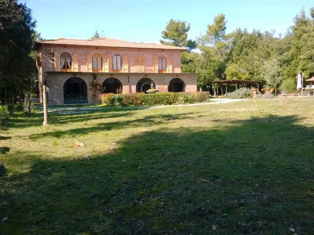 San Gimignano vendesi casale rustico in stile toscano di circa 680 mq. Il casale rustico si trova a 2,5 km dal centro del paese e si presenta costituito al piano terra da 2 appartamenti di circa 92 mq netti, una veranda di 80 mq, e n 3 locali uso magazzini per complessivi 240 mq. Il piano superiore è composto da un appartamento di oltre 270 mq. Ingresso, bagno di servizio, studio, ripostiglio, salotto cucina, ampio salone 40 mq, terrazza panoramica di mq 80, corridoio, 4 camere da 25 mq l'una, 2 ampi bagni. La proprietà circostante di circa 2,5 ettari è interamente recintata e censita come " fondo chiuso " dalla Provincia di Siena. Attiguo all' immobile si trovano n 3 gazebo che formano 6 posti auto coperti a servizio dell'edificio, un box in legno ( 24 mq) un capanno con recinto dove erano alloggiati degli allevamenti di polli e seminterrate n 3 cisterne in c.A. Di circa 10 mc ciascuna che raccolgono tutta l'acqua piovana del tetto da utilizzare poi per gli utilizzi più vari. Classe Energetica: g epi: 300,00 kwh/m2 anno