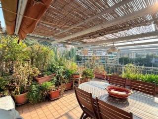 La zona giorno accoglie con un ingresso ampio e funzionale, un salone doppio di circa 40 mq con area pranzo e accesso al balcone con splendida vista aperta su Piazza Marconi. A seguire, cucina abitabile con comodo ripostiglio e balcone verandato attrezzato come zona lavanderia.
