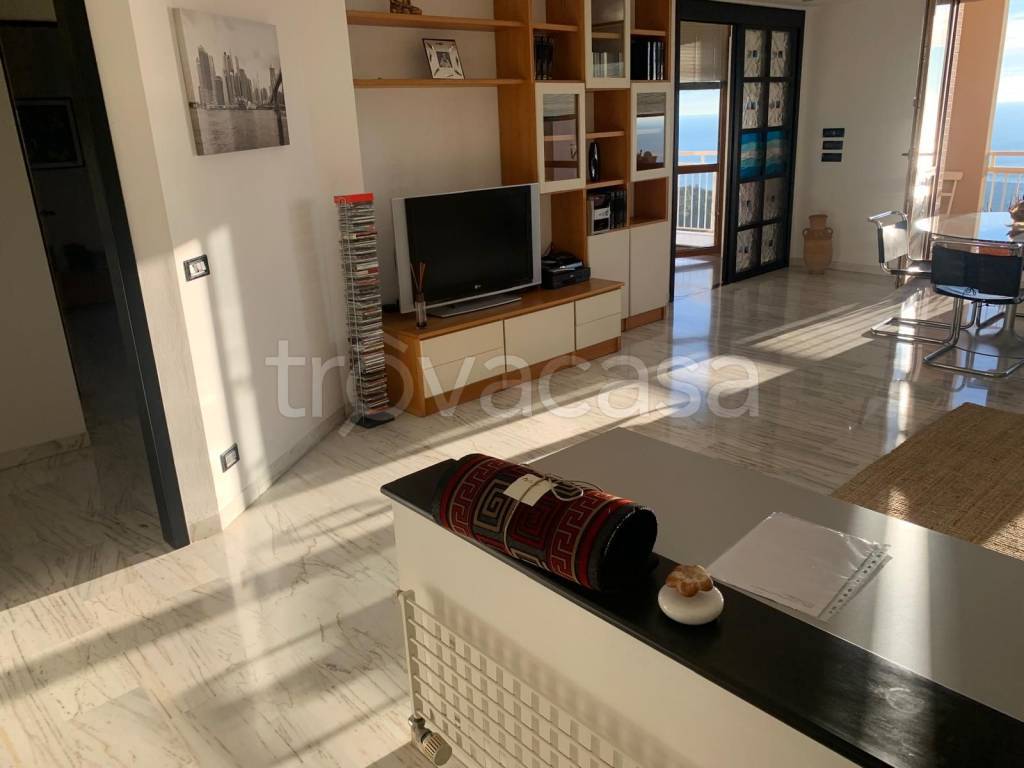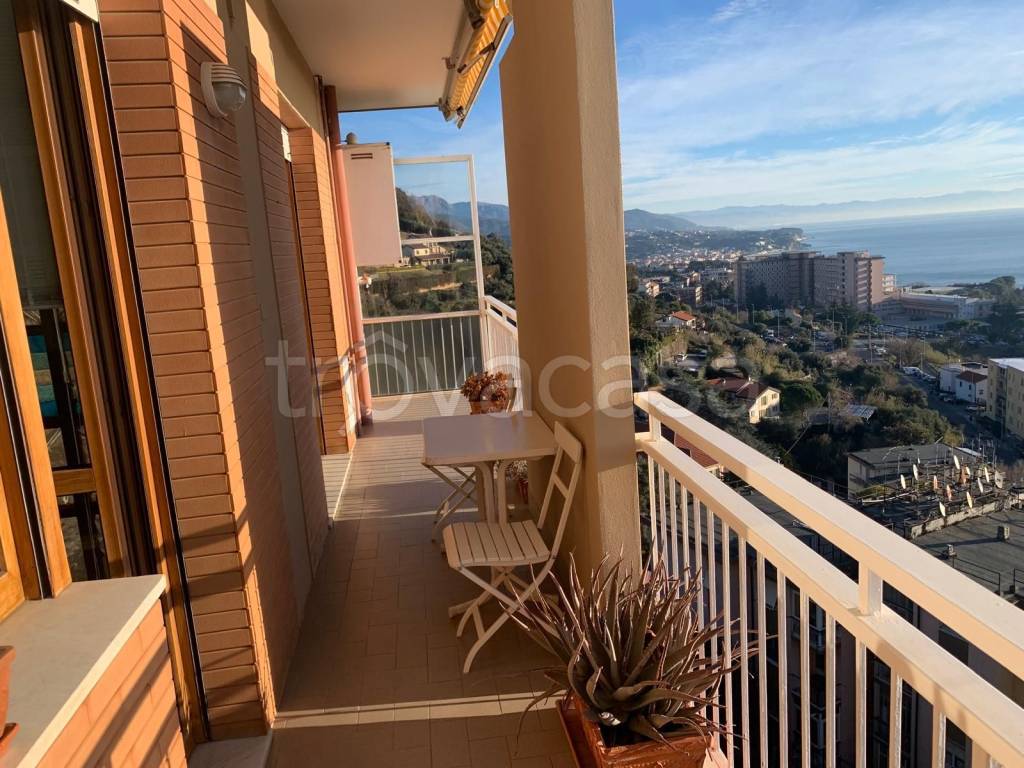 Valloria, nella parte privata di via Visca, in posizione molto tranquilla con suggestivo panorama verso il mare, appartamento completamente ristrutturato e arredato, composto da ingresso, salone doppio, cucina abitabile, tre camere da letto (2 matrimoniali e 1 singola), due bagni (1 con vasca e l'altro con doccia), ripostiglio, un balcone a Nord e una grande balconata fronte mare vivibile a Sud. La dotazione è completata da un’ampia e asciutta cantina e da un box singolo situato a pochi metri dal portone.