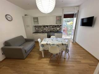 Nostra esclusiva affitto turistico mensile - Trilocale con piccolo terrazzino a soli 600 mt dal mare. Composto da ingresso, cucina abitabile, soggiorno, ampia camera da letto, bagno finestrato, balconata e terrazzino. Posto al secondo piano con ascensore e riscaldamento autonomo. Ottime condizioni interne!