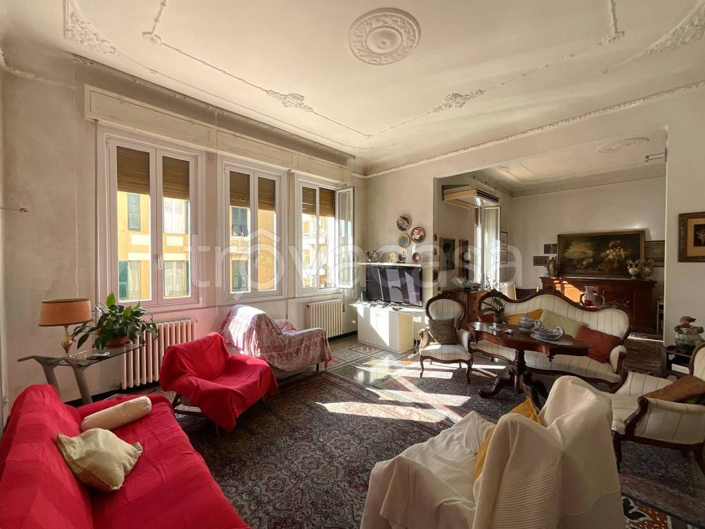 Con una superficie di oltre 200 mq., questa dimora attualmente si compone di grande ingresso genovese, salone doppio, sala da pranzo annessa con balcone, cucina abitabile, 3 grandissime camere da letto, 2 bagni finestrati e dispensa.