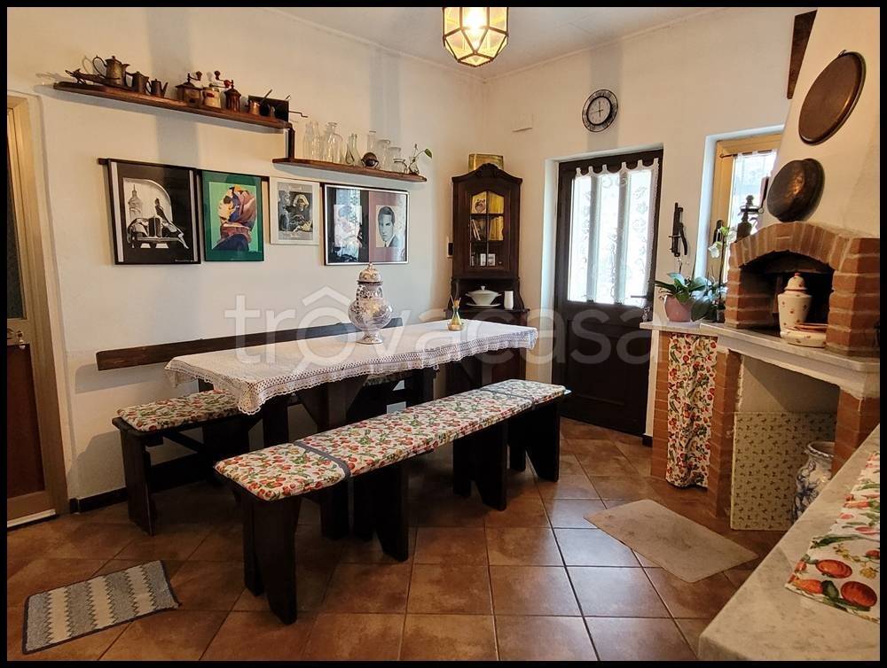 Ingresso da giardino privato, cucina abitabile, due camere, salotto con caminetto a legna canalizzato, disimpegno, doppi servizi e tavernetta con cucina in mratura e forno a legna.