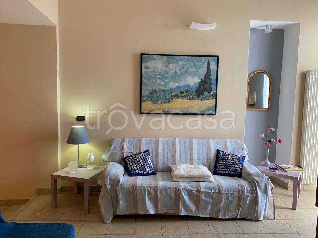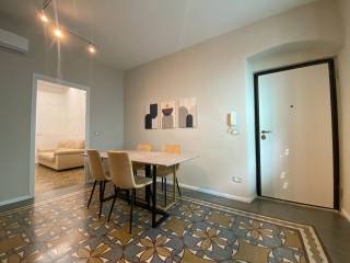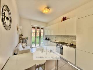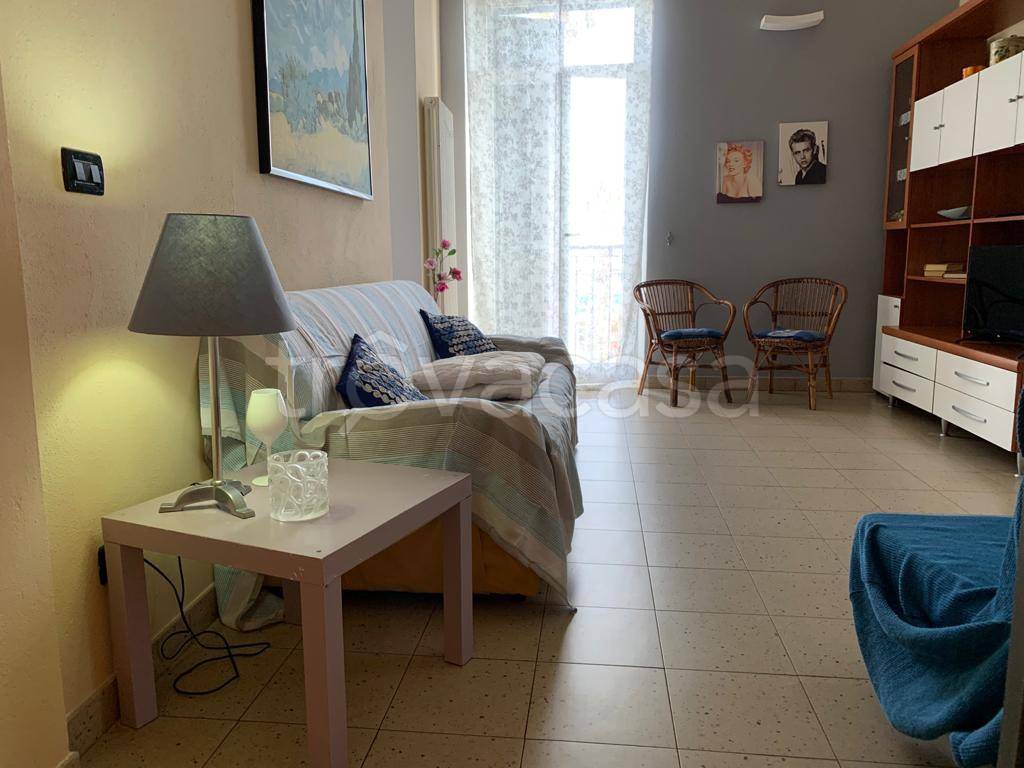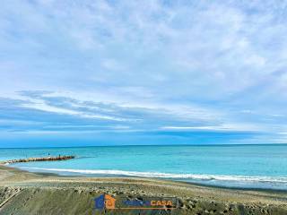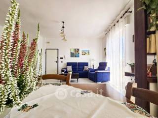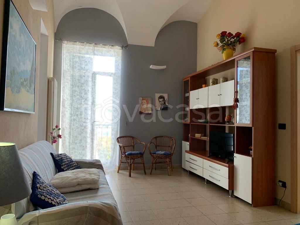 Quadrilocale ristrutturato con doppi servizi (di cui uno con vasca), due camere da letto matrimoniali (una con il proprio bagno), ampio salone e cucina abitabile con piccolo ripostiglio. L'appartamento è ben esposto alla luce, con vista mare e con ampi soffitti a volte a vela. Si trova proprio davanti al lungomare con ingresso sul tipico carruggio ligure del paese.