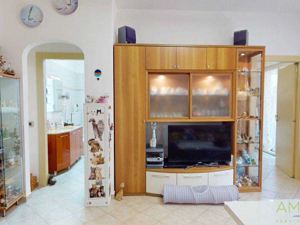 L’appartamento ha una distribuzione intelligente degli spazi: ingresso, una zona giorno luminosa composta di cucina e salotto separati, una camera, bagno, un bel balcone con tenda da sole e una soffitta di pertinenza.