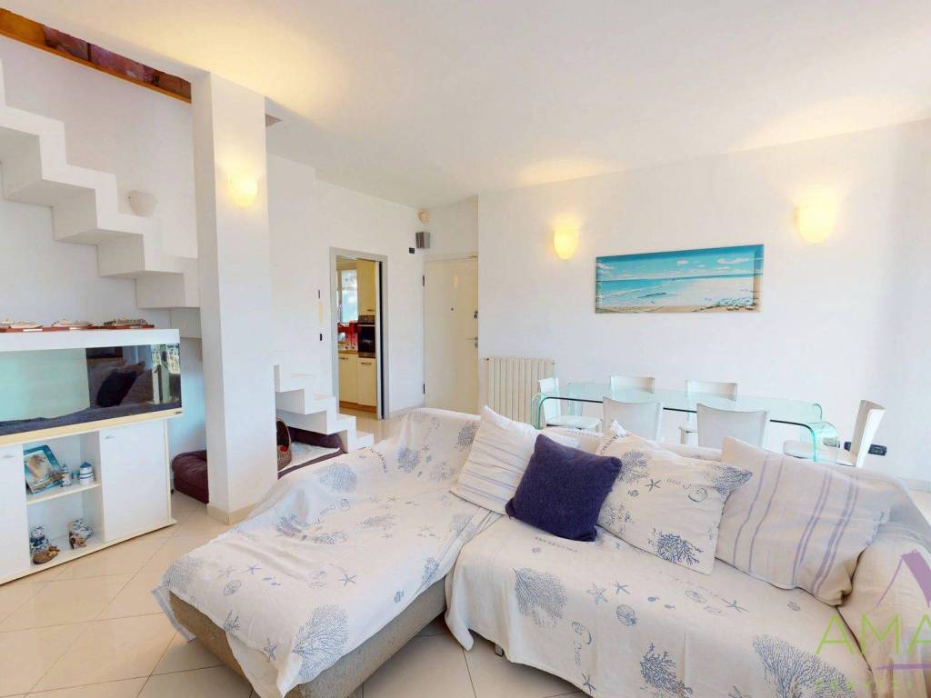 Al piano principale si apre un luminoso salone, seguito da una cucina accogliente, due camere, un bagno con vasca idromassaggio e due balconi che offrono una gradevole vista aperta.