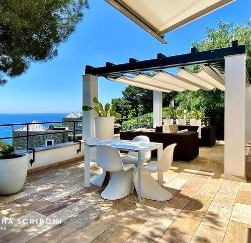 Questa lussuosa proprietà si trova alla fine di Via Aurora, una zona rinomata di Andora per la sua pittoresca posizione. Immersa nel verde della tipica flora ligure ed affacciata sul mare cristallino, offre spettacolari viste panoramiche sulla cittadina e sul suo porto.