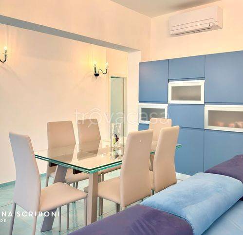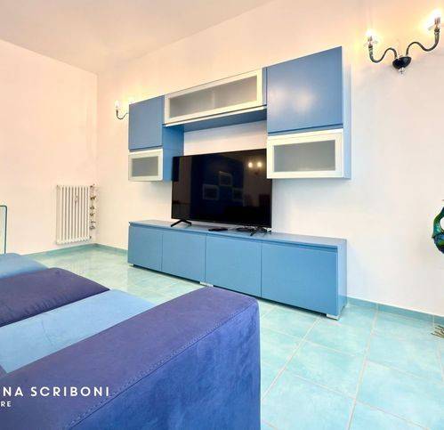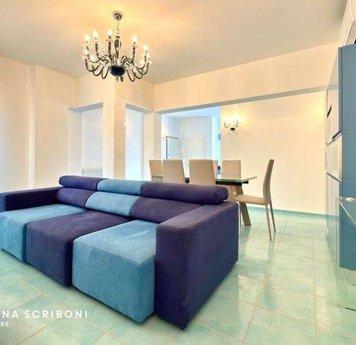 Nel pieno centro di Marina di Andora, a pochi passi da tutti i principali servizi, negozi ed attrazioni turistiche. Questo appartamento si pone al quarto piano di una palazzina ben tenuta, dotata di ascensore e caratterizzata da un contesto curato e comodo sotto ogni aspetto.Lingresso si apre su un ampio disimpegno, che anticipa la sensazione di respiro e spaziosita che accompagna lintera abitazione. La zona giorno e composta da una cucina abitabile, ben collegata al soggiorno tramite un'apertura ampia e priva di porta, che mantiene una distinzione funzionale tra gli ambienti pur garantendo continuita visiva. Il soggiorno, grande e luminoso, si presta perfettamente sia come zona living che come sala da pranzo. Un corridoio conduce alla zona notte, dove si trovano due camere matrimoniali di generose dimensioni. I bagni sono due, uno con doccia e laltro con vasca. A completare gli interni, un pratico ripostiglio/vano tecnico. Lappartamento e impreziosito da due terrazzi ben vivibili, che garantiscono sfogo esterno e luminosita durante tutto larco della giornata. Recentemente rinnovato con materiali moderni e finiture eleganti, l'immobile si presenta in condizioni impeccabili, con uno stile fresco, contemporaneo e curato nei dettagli. Le tonalita scelte, come lazzurro e il rosa, rendono lambiente accogliente e con un tocco personale e distintivo. Completano la proprieta una comoda cantina e un garage nelle immediate vicinanze, elementi che aumentano il valore dellimmobile e lo rendono adatto sia come casa vacanza di alto livello, sia come residenza principale allinterno di uno dei contesti piu centrali ed apprezzati di Andora.