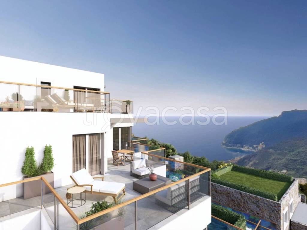 Le soluzioni disponibili comprendono bilocali, trilocali e attici nel corpo principale, oltre alle esclusive villette immerse nel verde, caratterizzate da rivestimenti in pietra e finiture di lusso. Tutte le unità godono di una splendida vista mare panoramica, con ampie terrazze o giardini privati che permettono di vivere appieno gli spazi esterni in totale relax e privacy.