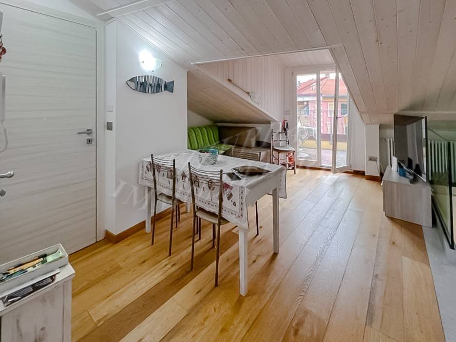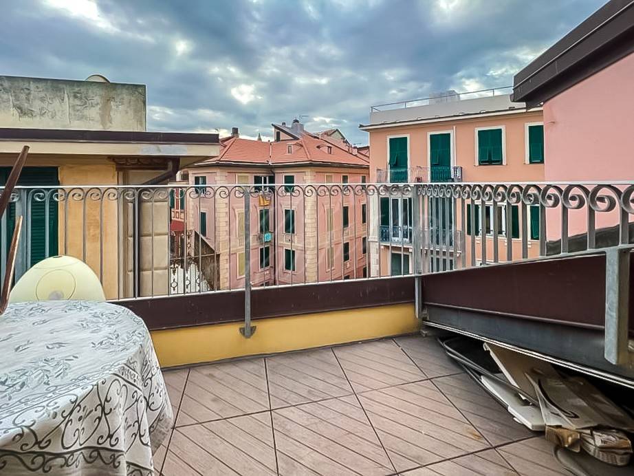 Varazze, pezzo unico : Nel cuore del centro storico, a pochi metri da mare e spiagge, al terzo e quarto piano di una caratteristica palazzina ligure completamente ristrutturata, si vende prestigioso duplex di concezione moderna, servito da ascensore con arrivo direttamente all'interno dell'appartamento, ristrutturato con finiture di pregio e dotato di due ampie terrazze panoramiche. Internamente si compone di : al piano superiore, un'ampia e luminosa zona living con cucina a vista, un bagno e l'accesso alle due ampie terrazze. Tramite una moderna scala di design si accede alla zona notte sottostante, composta da due camere e da un secondo servizio. L'appartamento è dotato di doppio ingresso (uno al piano inferiore ed uno al piano superiore direttamente con ascensore) Riscaldamento autonomo ed impianto di climatizzazione.