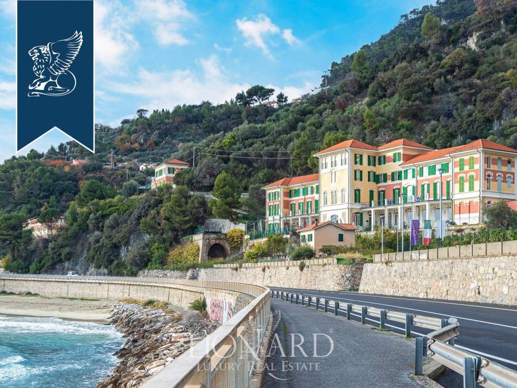 Questo prestigioso complesso storico in vendita sorge in esclusiva posizione fronte mare a Finale Ligure, nel cuore della Riviera delle Palme.