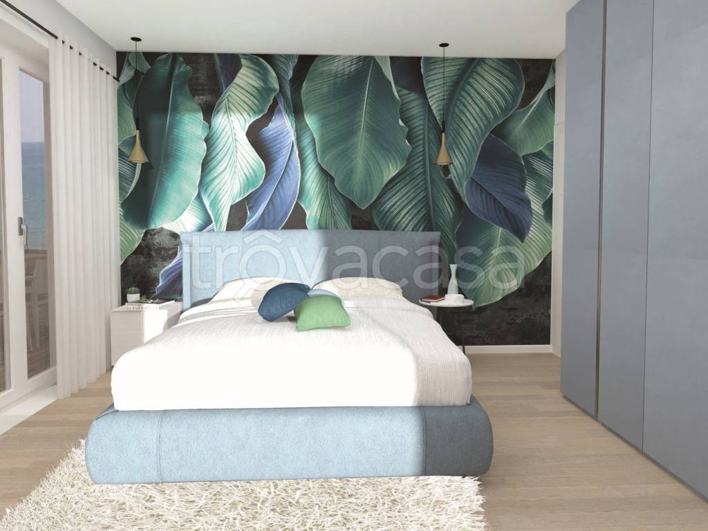 L' alloggio da progetto ha un grande ingresso, soggiorno con angolo cottura affacciato sulla grande terrazza, due camere, cabina armadio,2 bagni e una spettacolare terrazza vista mare dove si potrebbe ricavare una pergola bioclimatica.